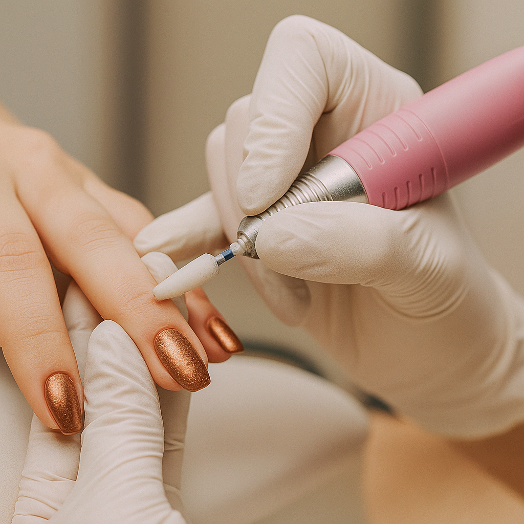 ابتدا با یک بافر نرم یا سوهان زبری کم، سطح براق لاک ژل را کمی بتراشید تا لایهی محافظ شکسته شود و استون بهتر به آن نفوذ کند.